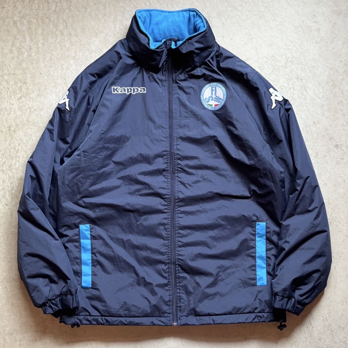> 【Kappa】イタリア代表 カッパ 裏フリース シェルジャケット ウインドブレーカー メンズ XL 紺/NAVY ロゴ 刺繍 ITALY ブルゾン 古着 USED