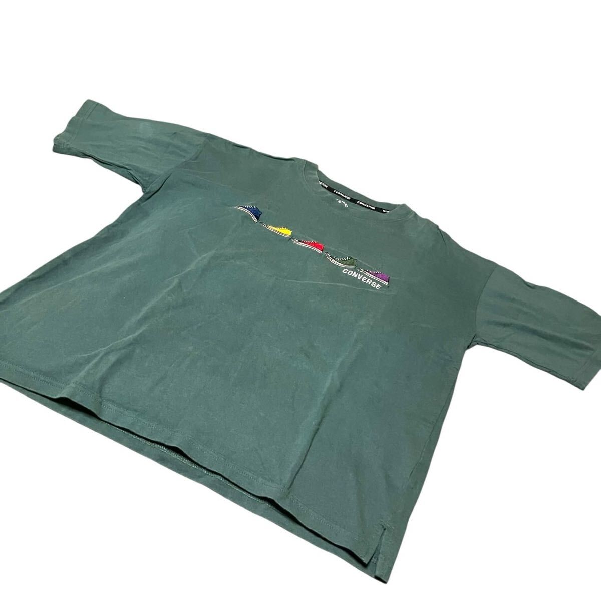> 美品 CONVERSE コンバース Tシャツ スニーカー刺繍 M グリーン 半袖Tシャツ コットン