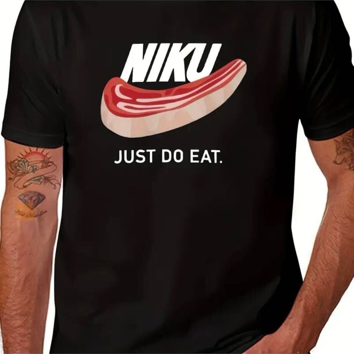 - 新品 パロディ NIKU Tシャツ XXLサイズ★ブラック 半袖 Tシャツ 焼肉 カルビ 唐揚げ 筋トレ ステーキ バーベキュー BBQ パーティー ギャグ