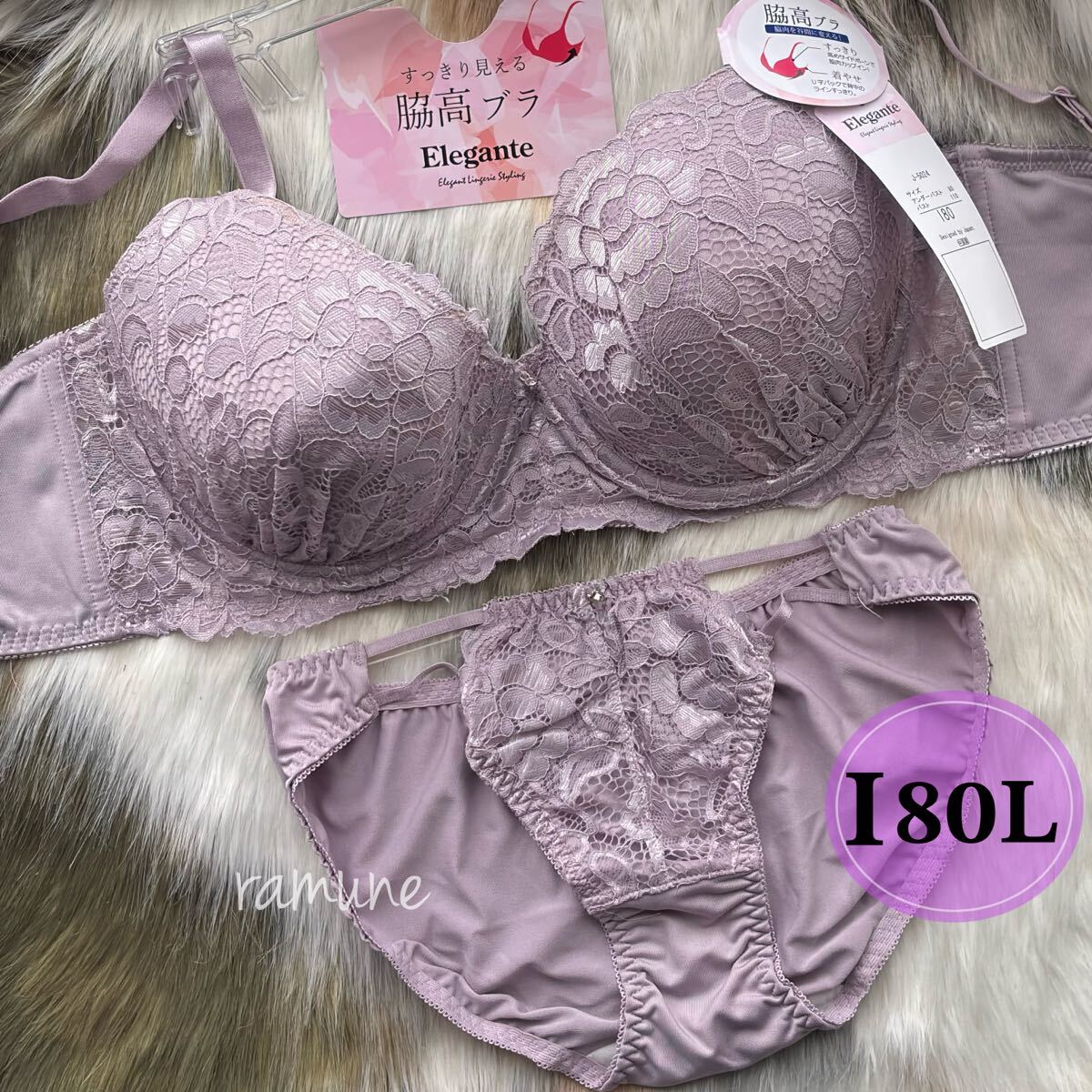 - 【I80/L 薄紫 上下セット】新品 ブラ&ショーツセット ブラジャー ショーツ パッド内蔵 脇高 レース グラマー Iカップ 大きいサイズ