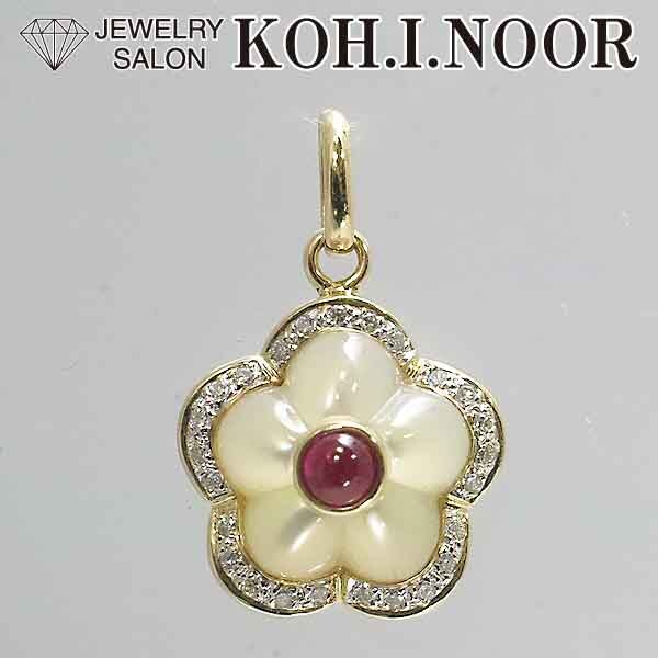 - ルビー 0.34ct ダイヤモンド 0.15ct シェル 18金イエローゴールド K18YG ペンダント トップ 花 フラワー