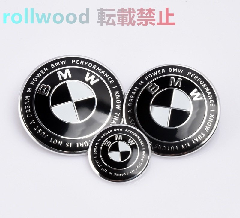 > BMW 50th Anniversary ボンネット・トランク・ステアリングエンブレム 82mm 74mm 45mm 各1枚 3枚セット Bk