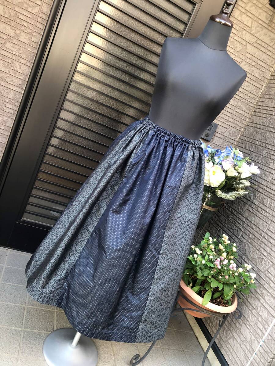 - ハンドメイド 着物リメイク・和服リメイク 大島紬 2色 フレアスカート・ロングスカート 古布 アンティーク