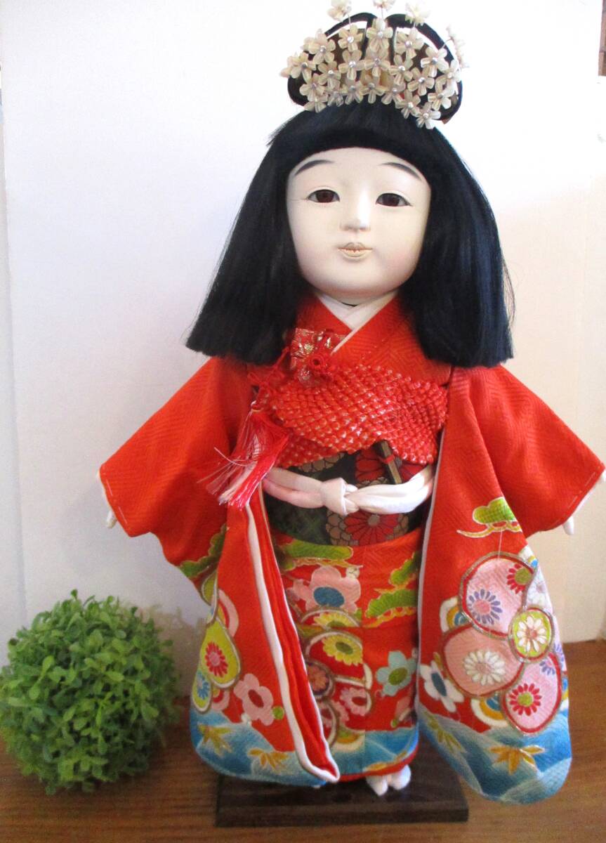 - 市松人形 手縫い衣裳 台座付 日本人形 ドール インテリア 飾り 置物 伝統工芸品 コレクターアイテム コレクション 着物 和風