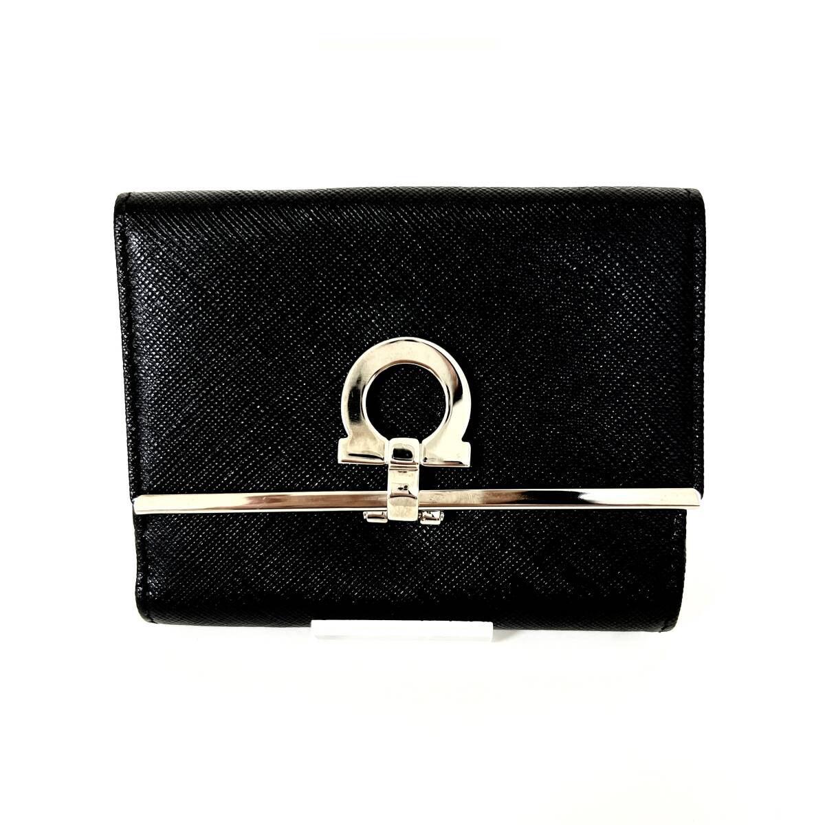 - SD2027 美品! Salvatore Ferragamo サルヴァトーレフェラガモ ガンチーニ クリップ Wホック 二つ折り財布 レザー ブラック