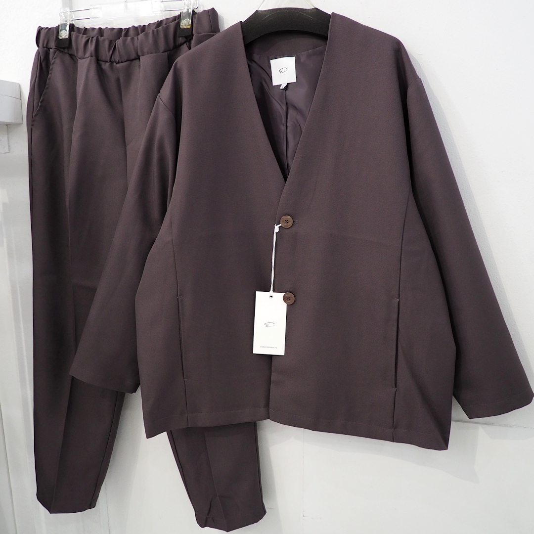 > 新品 定価11000円 エンダープロダクツ 短丈 ノーカラー ジャケット パンツ 上下 セットアップ グレー メンズ L ENDER PRODUCTS カラーレス