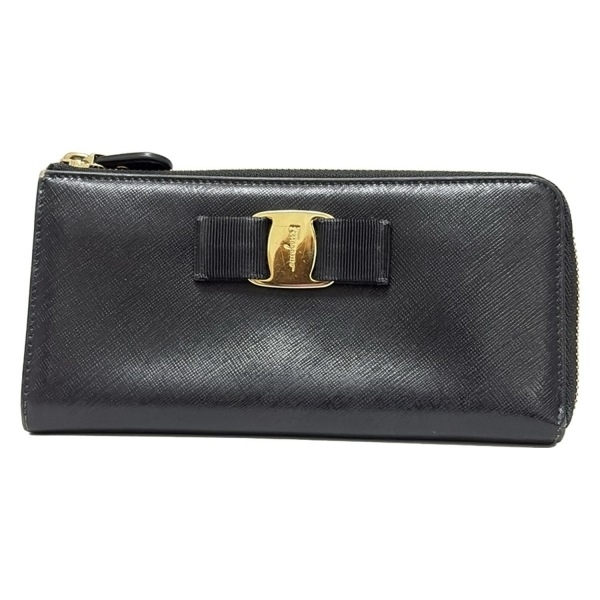 - サルバトーレフェラガモ FERRAGAMO/SalvatoreFerragamo 長財布 ヴァラ レザー 黒 L字ファスナー 財布
