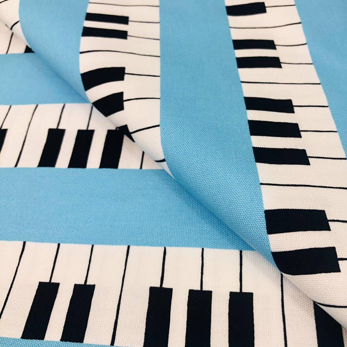 > 110×50 鍵盤 ピアノ オックス 水色 コットン生地 はぎれ 入園入学 音楽 レッスンバッグに