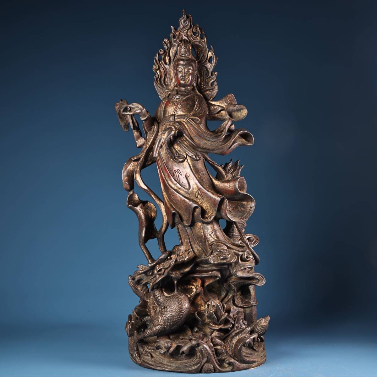 > 【超珍館蔵】銅製 站龍觀音菩薩像 仏像 宗教 仏教古美術 供養品 古賞物 古董品 古美術品 時代物 旧家蔵出 稀少珍蔵品