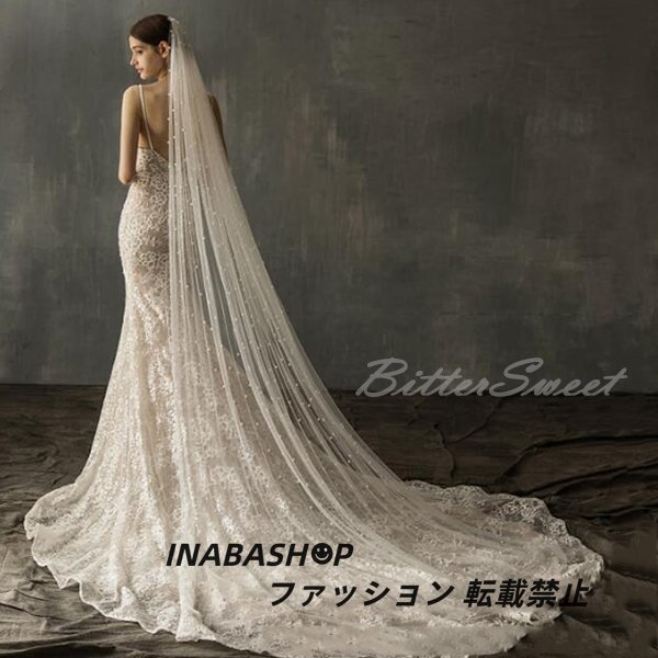 - ウェディングベール ロング 結婚式 新作 ウエディングベール ウエディング ブライダル ヴェール 前撮り 花嫁 パール レース ロング丈