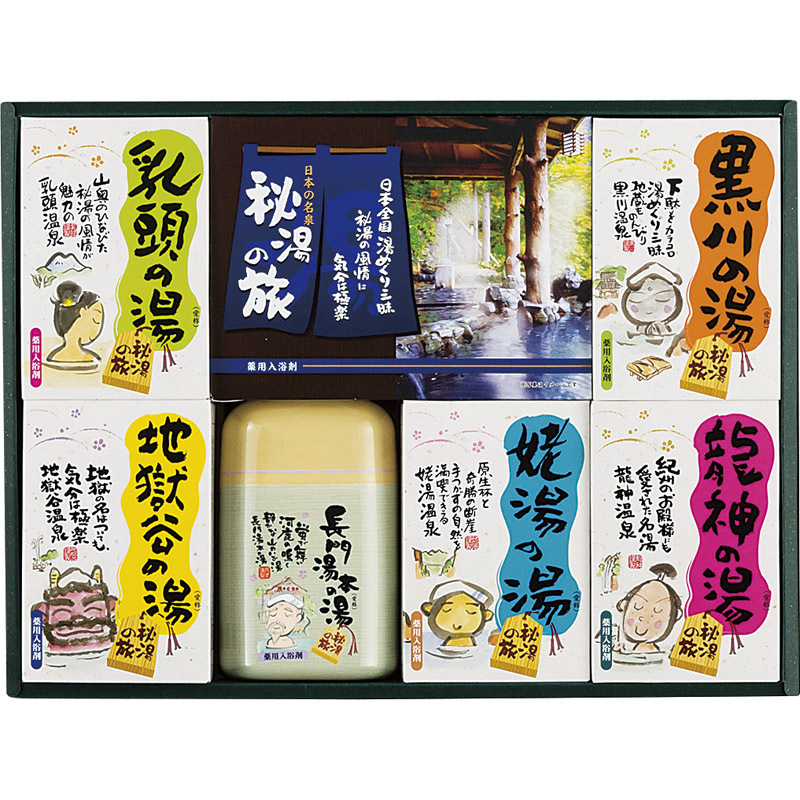 〇注意事項・送料800円が販売価格に含まれています・お取り寄せ商品です。弊社にて手配後、メーカー・卸業者からの直送になります。・まれにメーカー欠品、出荷遅延等が発生致します。問題発生時は別途メールにてご連絡致します。・配送方法の指定、日時指定、置き配、ギフト対応、他商品との同梱配送などは対応できません。・まとめ買いや複数購入の場合は通常より発送に時間が掛かる場合がございます・複数個口の場合、2階以上への搬入ができない場合があります。(その場合は1階での受け渡しとなります)・大型連休、お盆、年末年始などは発送をお休みさせていただく場合がございます・メーカー都合により、パッケージは予告なく変更される場合がございます・梱包用のダンボールはリサイクル品を使用させていただきます。・注文に関するご連絡(注文確定通知・発送通知など)はメールでご案内させていただきます※商品ページの内容について、少しでもご不明な点などがございましたら購入前に一度ご連絡ください〇商品説明あらゆるギフトシーンにおすすめです!日本の名湯をイメージした薬用入浴剤です。〇商品仕様●内容:薬用入浴剤:25g×3包×5(乳頭の湯・地獄谷の湯・黒川の湯・姥湯の湯・龍神の湯×各1)、薬用入浴剤(姥湯の湯):25g×4包×1、薬用入浴剤(長門湯本の湯):250gボトル×1規格●化粧箱入(345×50×260mm) 1150g●加工地:日本(出典:株式会社 八大)