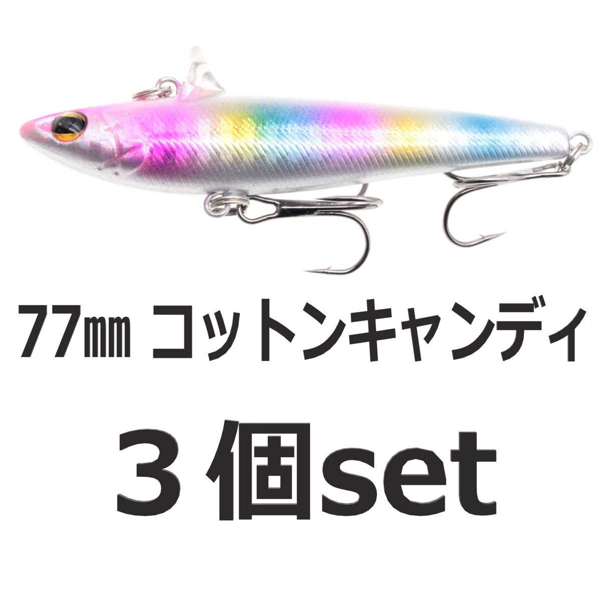 > 【送料無料】ローリングベイト風 ルアー コットンキャンディ 77mm14.6g ヘビーウェイト バイブレーション 3個セット シーバスルアー