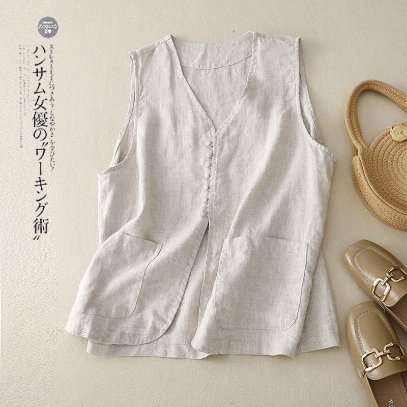 - ベスト レディース 綿麻 サマーベスト リネン 薄手 ジレベスト 涼麻 サマージャケット 綿麻ベスト 春夏 ノースリーブ 重ね着風リ