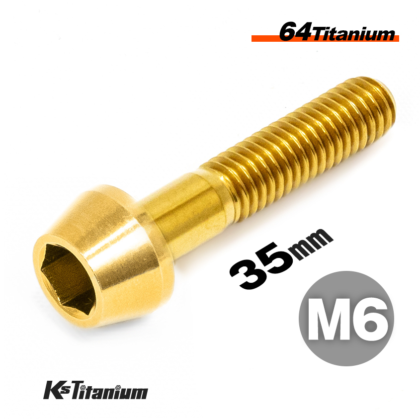 > チタンボルト M6×35 P1.0 ゴールド 1本売り 64チタン テーパーボルト スレッド 25mm バイク レストア パーツ