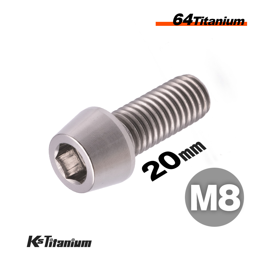 - チタンボルト M8×20 全ネジ P1.25 テーパーボルト シルバー 1本売り 64チタン M8 バイク レストア パーツ
