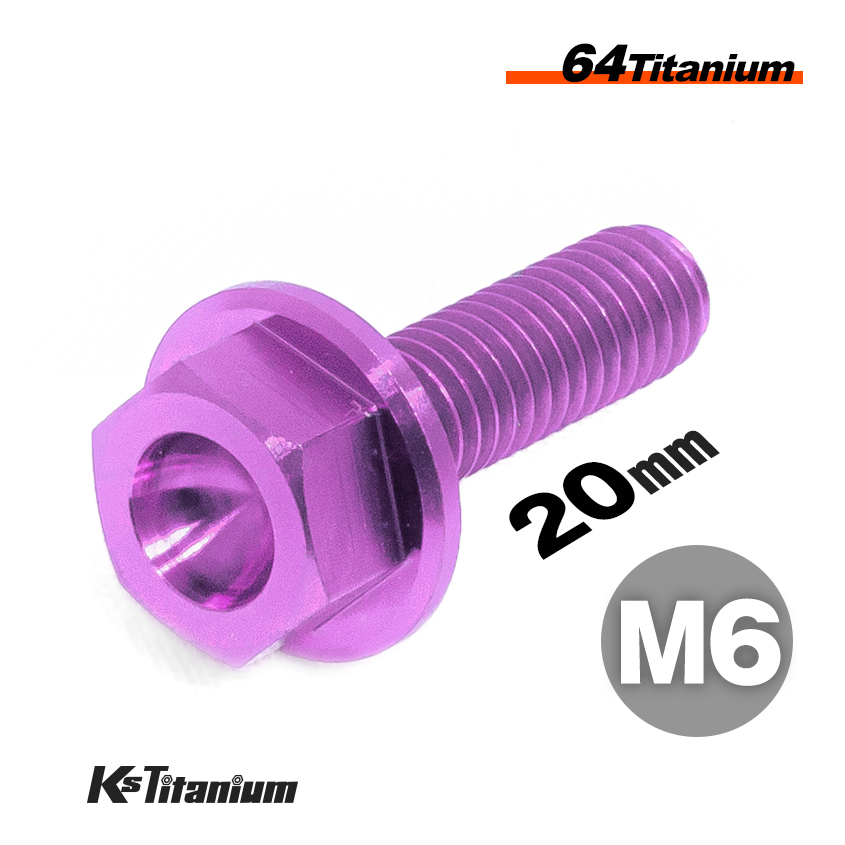 > チタンボルト M6×20 P1.0 パープル 64チタン フランジボルト FULLスレッド 全ネジ チタン合金 バイク パーツ 自転車 軽量化