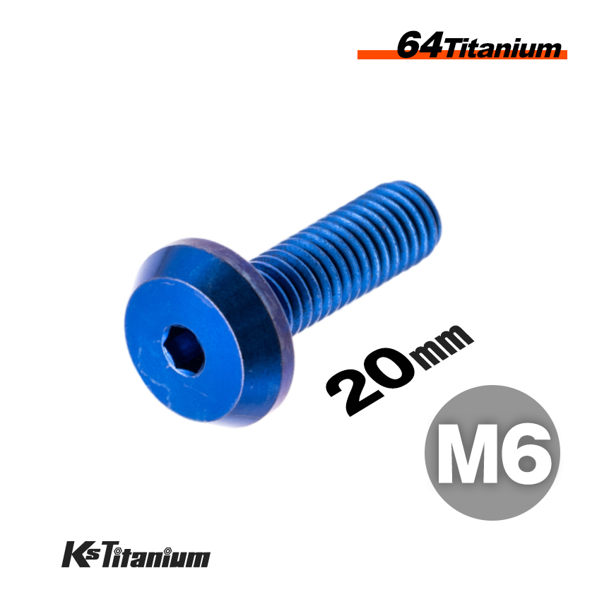 > チタンボルト M6×20 P1.0 ブルー 1本売り 64チタン テーパーヘッド ボタンボルト 全ネジ バイク レストア パーツ