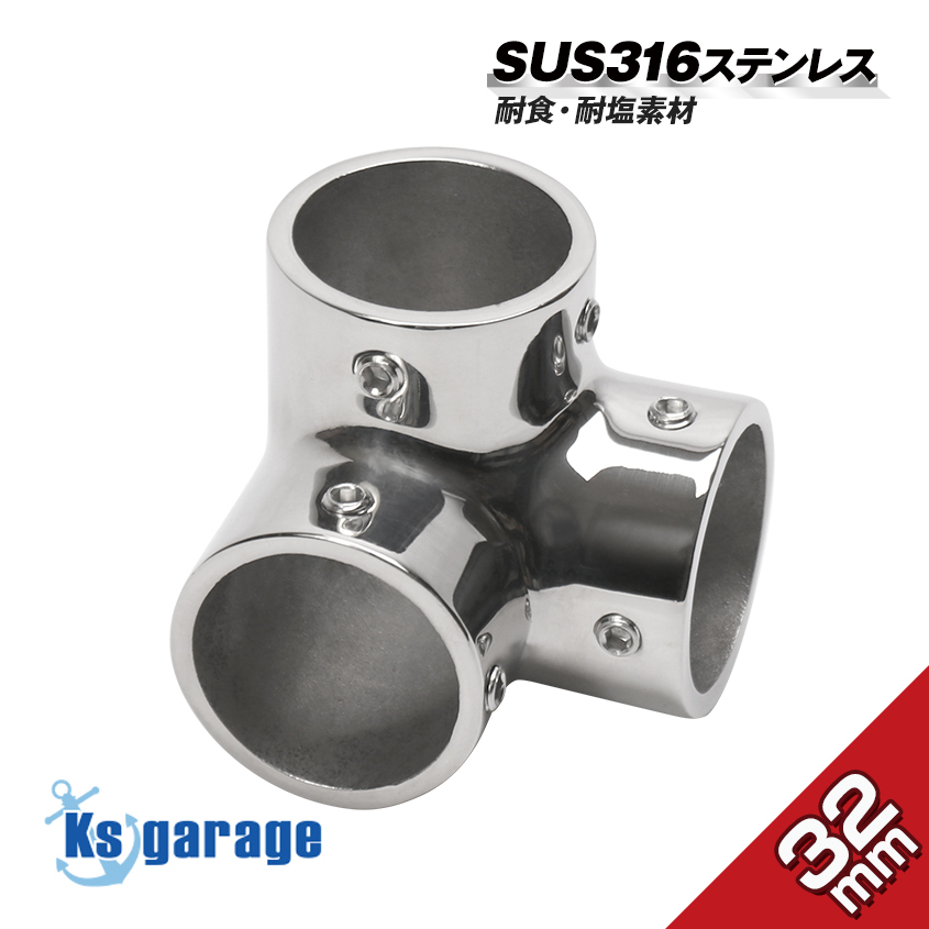 - SUS316 ステンレス 船 オーニング ボート テント 自作用 錆びに強い ステンレスパイプ ジョイント コーナー 三方ジョイント 32mmパイプ用