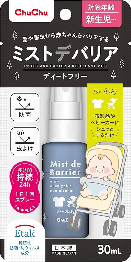 - 【赤ちゃん用虫よけ防菌ミスト】 チュチュベビー ミストデバリア30mL Etakイータック 持続性防菌・防ウイルス+虫よけ【虫よけ 防菌】◎