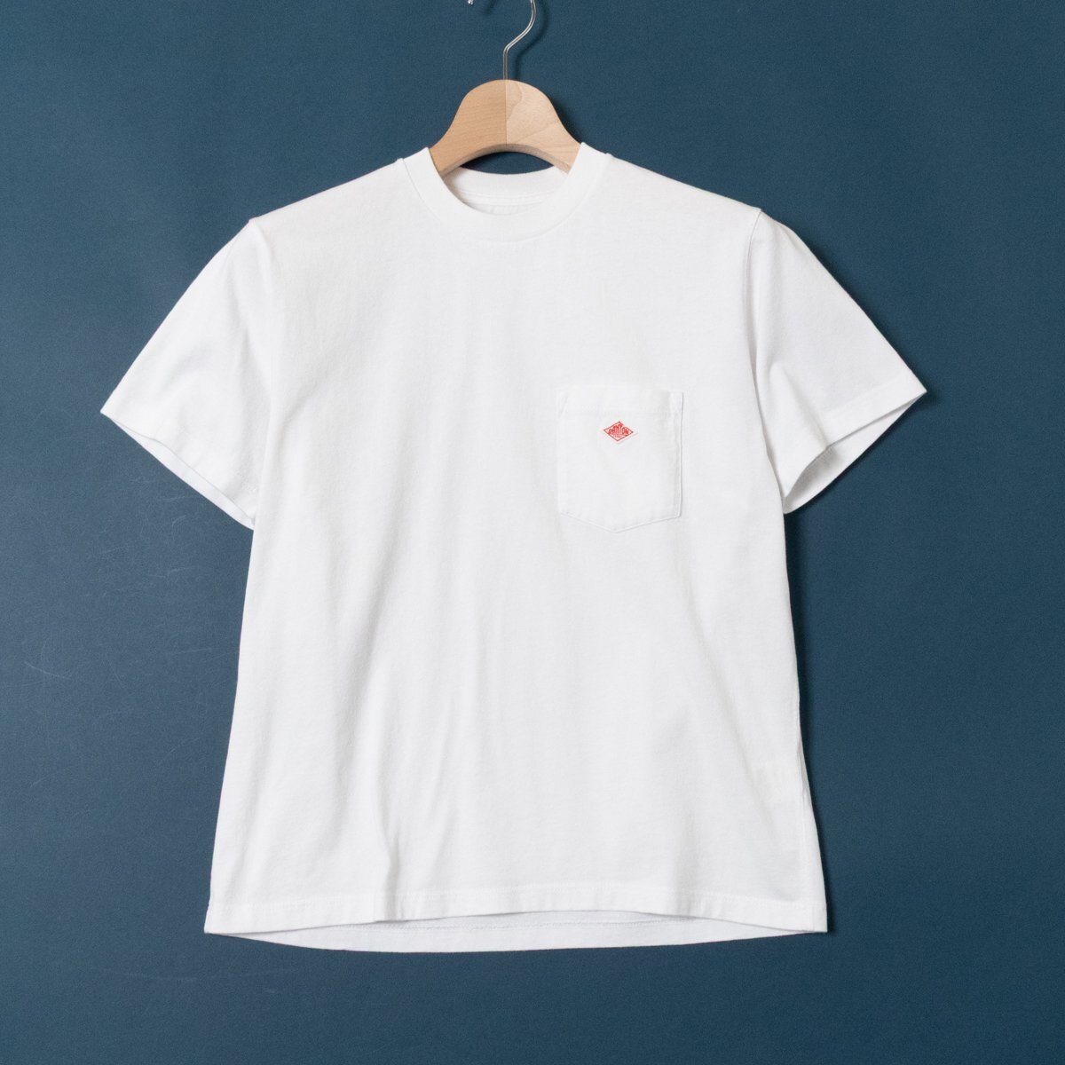 - メール便◯ DANTON トップス ダントン クルーネック 半袖Tシャツ ホワイト ポケット ロゴ カジュアル コットン100% 春夏 36 レディース