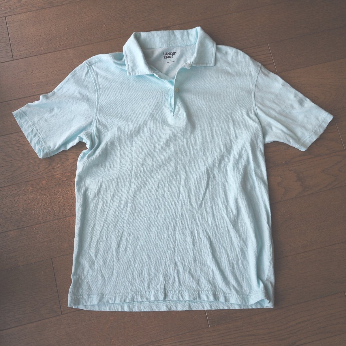 - LANDS’END ランズエンド 麻綿混 ポロシャツ US-S ブルー・水色