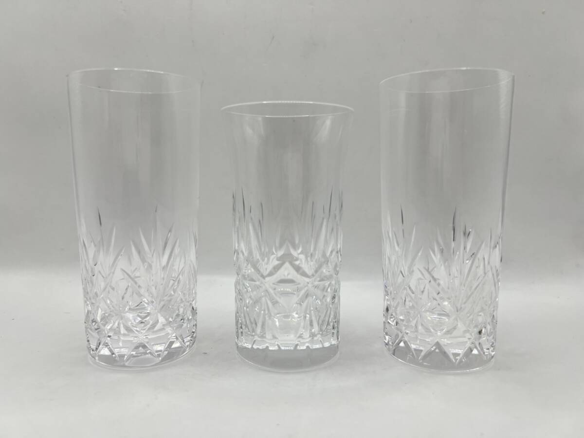 - 7B) カットグラス 3客セット 2+1 グラス 透明 使い勝手が良い ビアグラス ティーグラス 0905