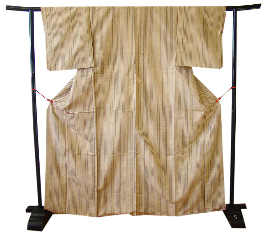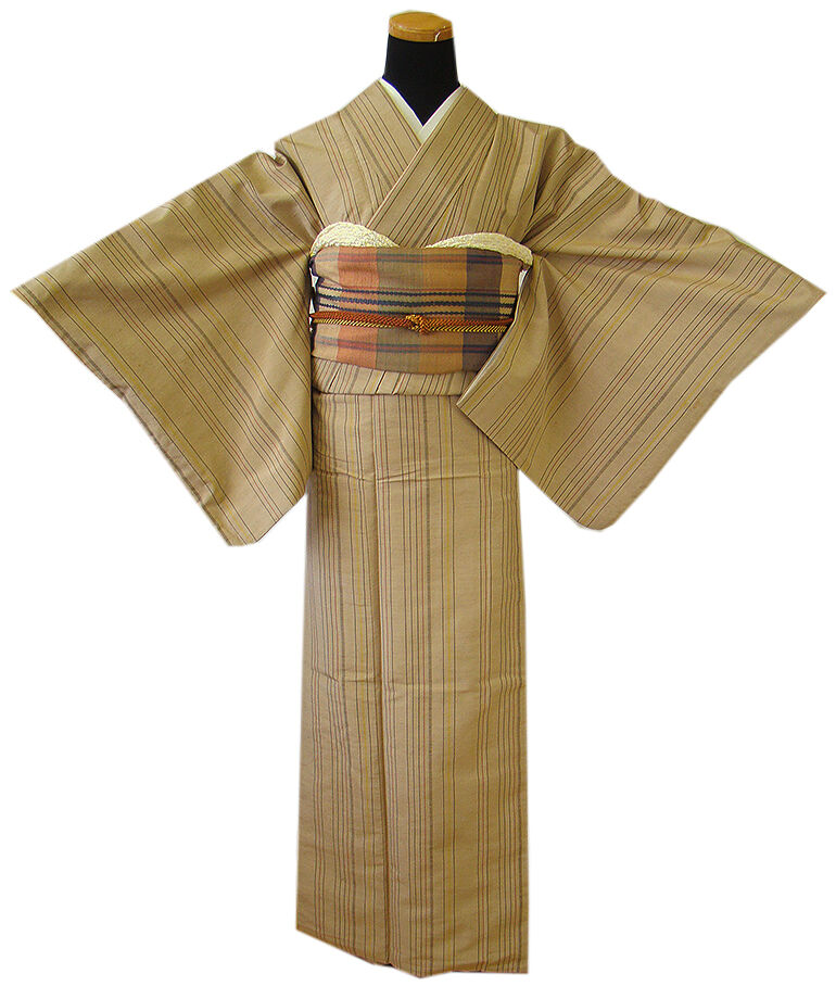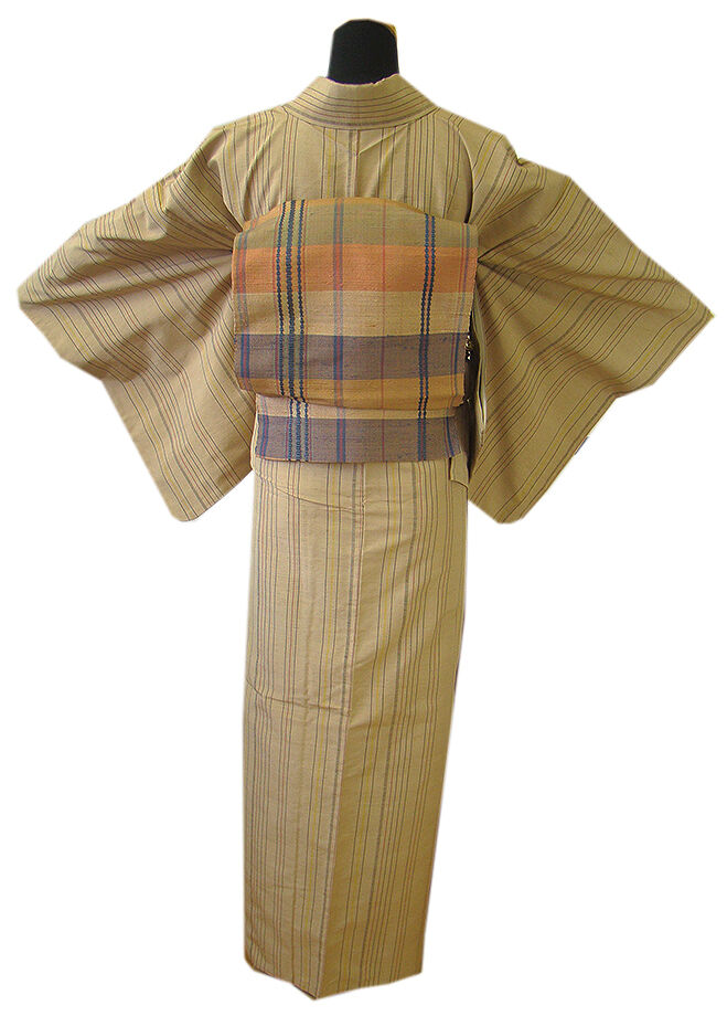 > きものしらゆり 身丈157cm 裄64cm 10~5月 ベージュ色 結城紬 なごや帯 帯揚げ 帯〆 正絹 セット 身長150cm~156cmの方に最適 B438