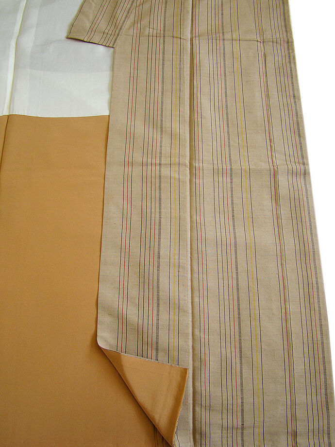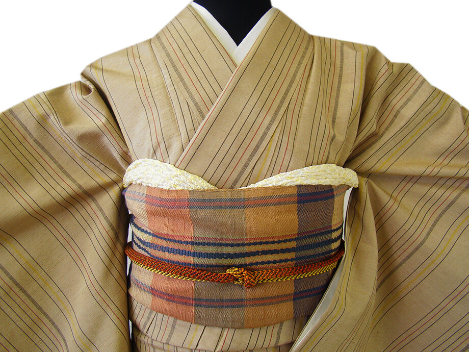 - きものしらゆり 身丈157cm 裄64cm 10~5月 ベージュ色 結城紬 なごや帯 帯揚げ 帯〆 正絹 セット 身長150cm~156cmの方に最適 B438