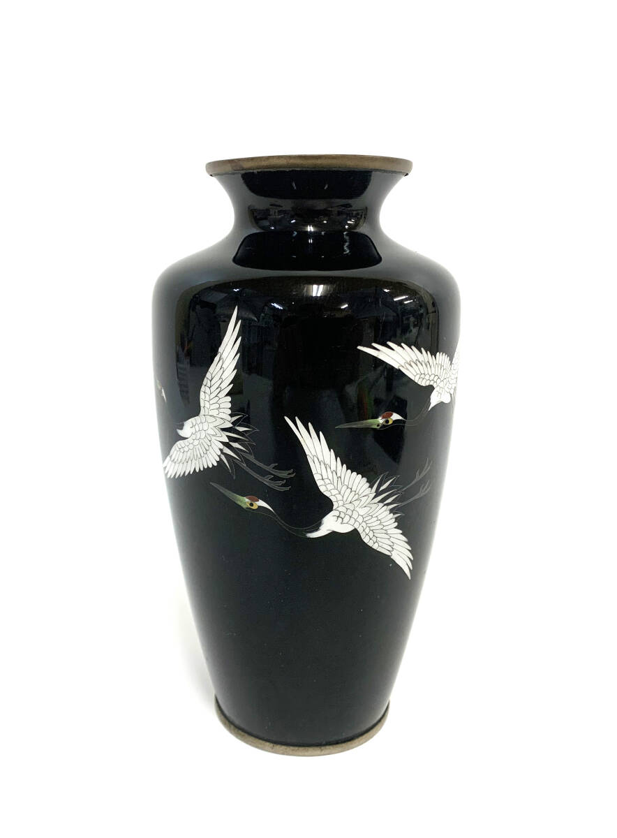 - X7★七宝花瓶 銅製 有線 飾り壺 鶴紋七宝 花器 花瓶置物 インテリア 花入 花生 壷 高さ19cm 骨董品 現状品