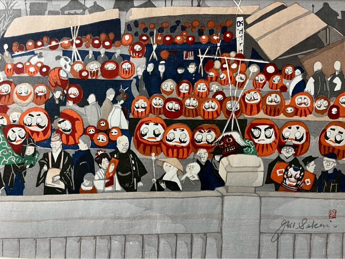 - 真作 関野準一郎「東海道 小田原」木版画 達磨 だるま 直筆サイン 今純三 恩地孝四郎に師事 東海道五十三次