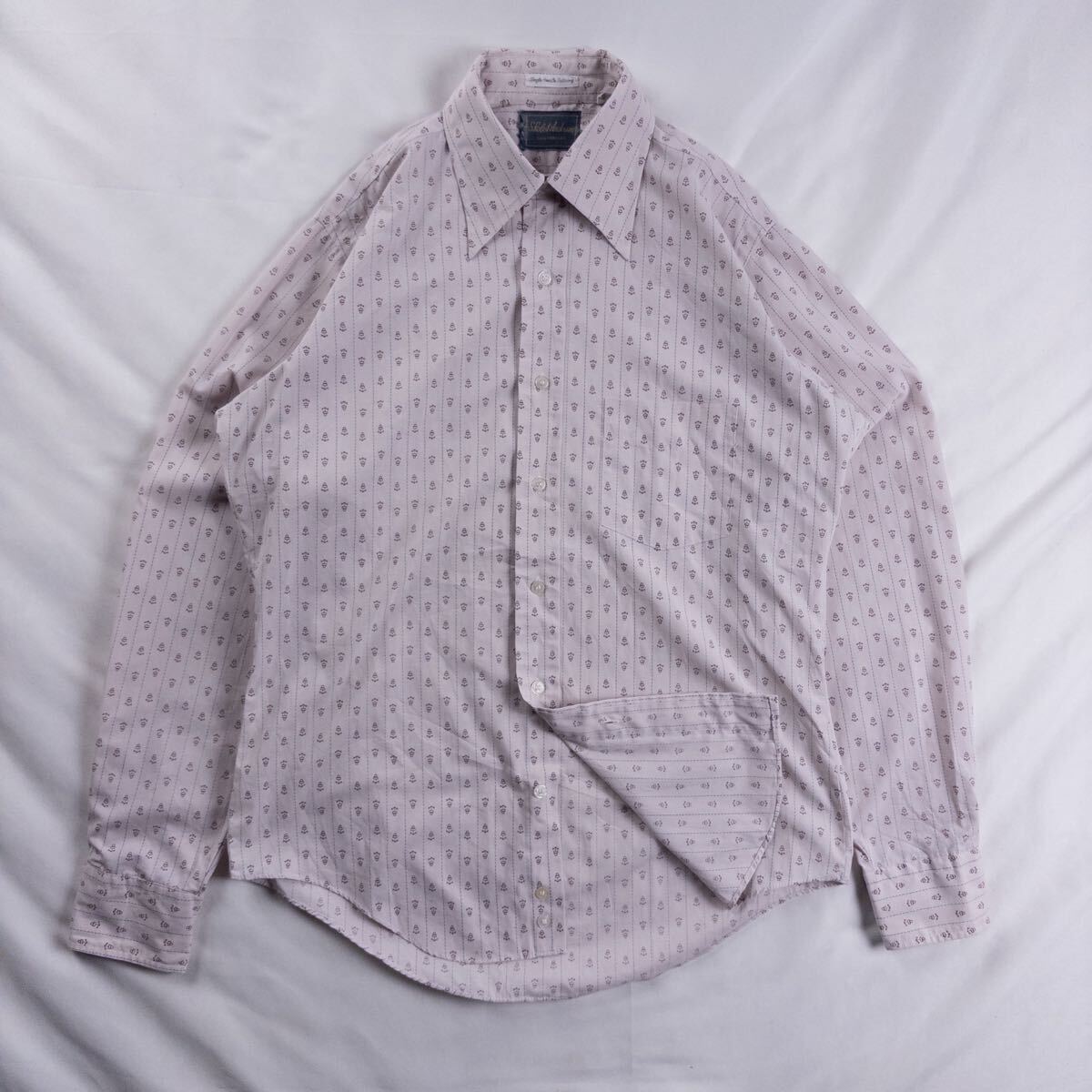 - US Vintage 70s S.Robert Anderson ポリエステル コットン くすみカラー アンカー 錨 ストライプ レトロ アトミック柄 ピンク 総柄シャツ