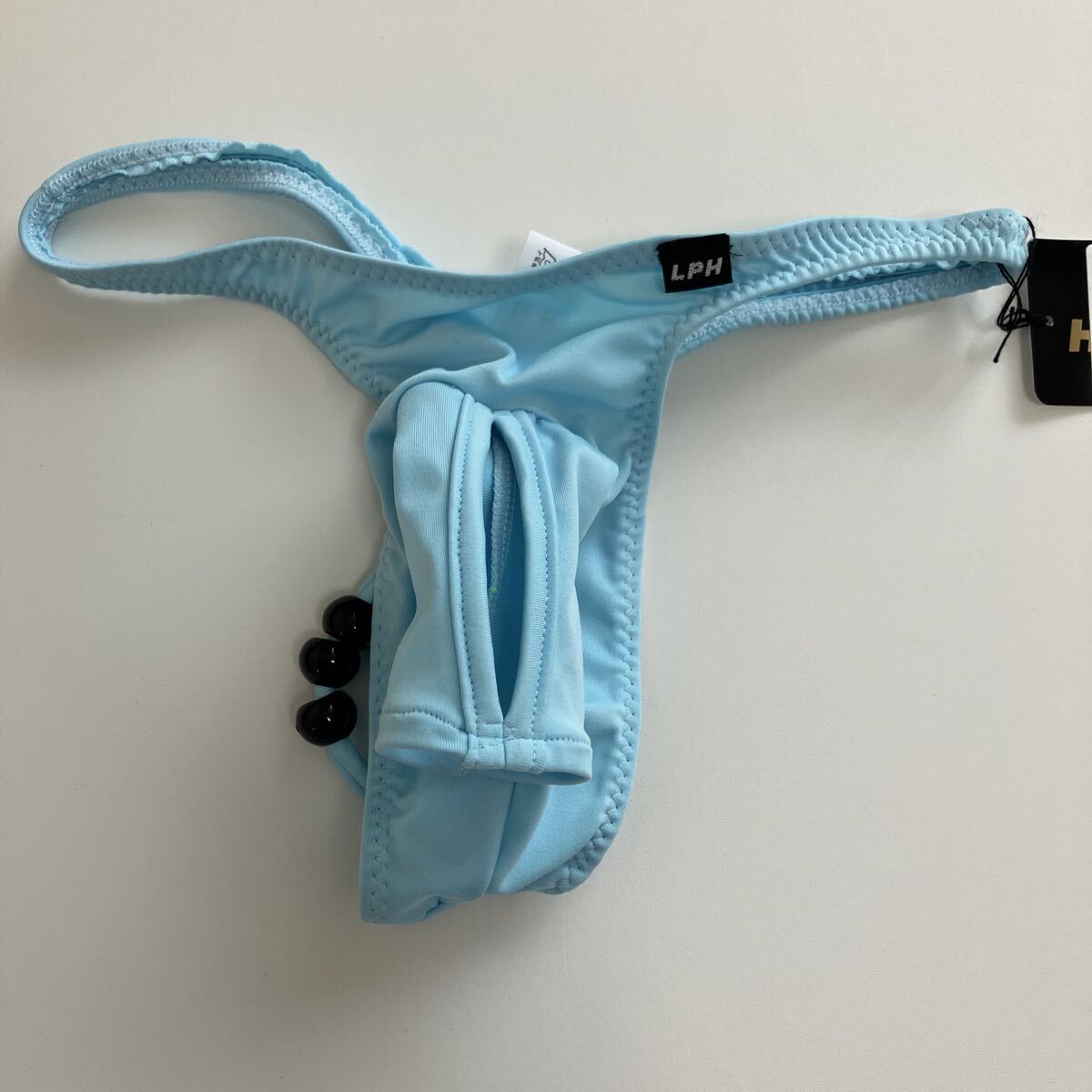 - ラポームオム メンズ La-pomme homme E6000生地 貫通型ゾウさん 3連ブラックボール Tバックビキニ サックス M