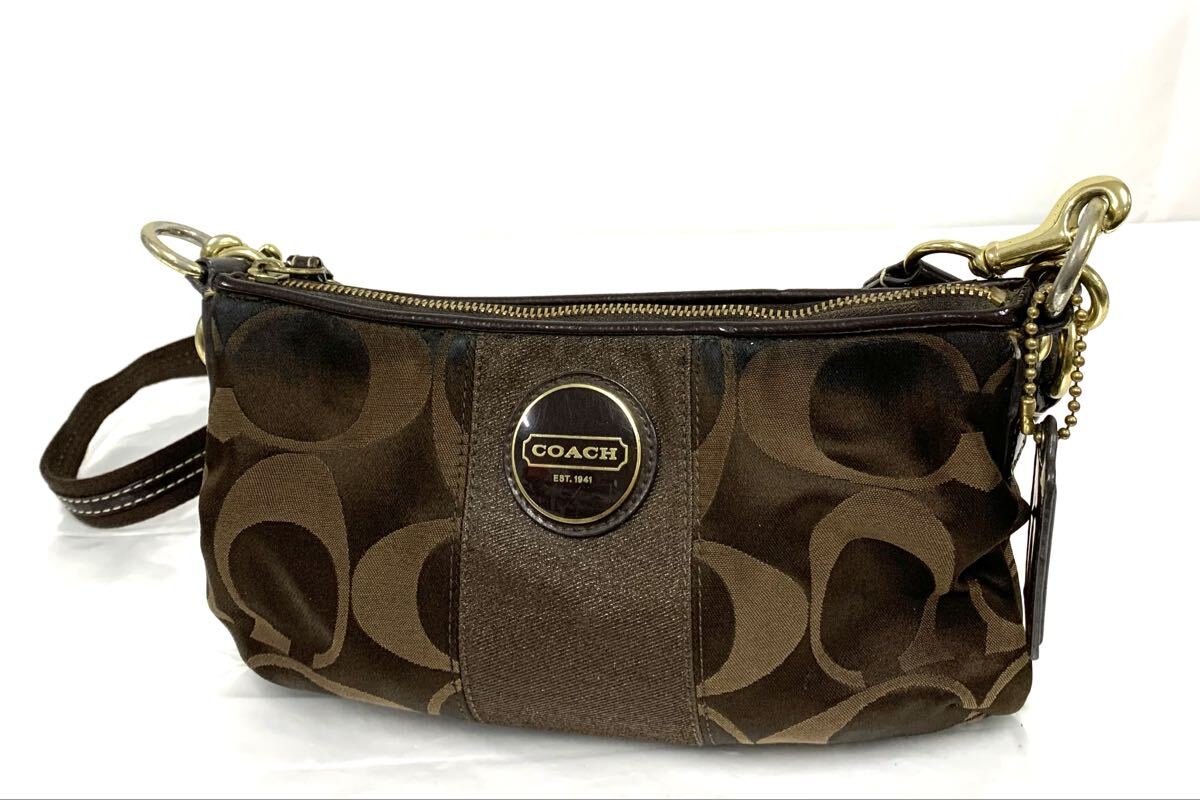 - コーチ COACH ショルダーバッグ シグネチャー キャンバス レザーブラウンカラー系 F18035 色変色あり o15