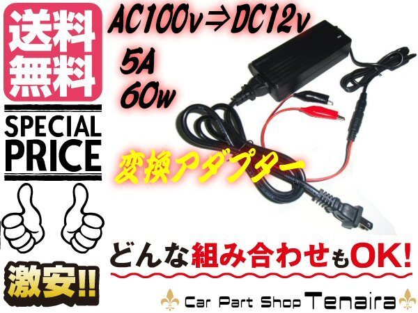 > ACDC AC100V→DC12V 5A 60W 変換 アダプター ワニクチクリップ付 安定化電源 家庭用 コンセント LEDテープ 検品 等 送料無料/4