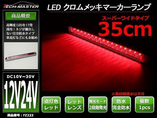 > 12V/24V 幅35cm 車高灯 汎用 クロムメッキ スーパーワイド LEDマーカー ランプ 防水 サイドマーカー 路肩灯 レッドレンズ/レッド FZ233