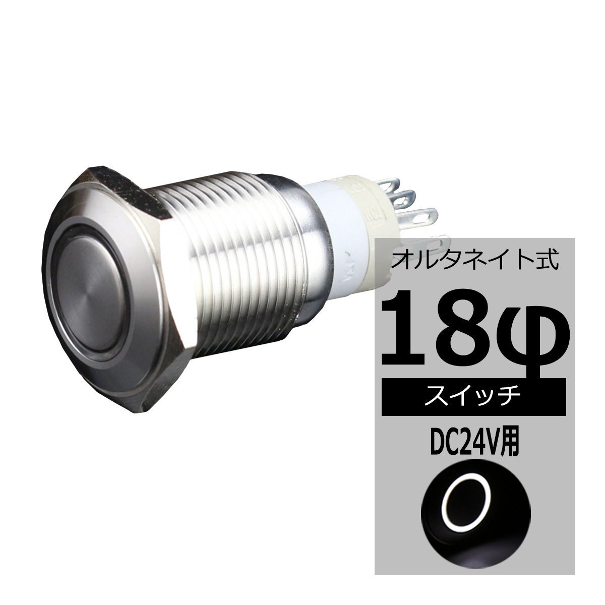 - φ18 プッシュスイッチ LEDリング付き DC24V イルミ 防滴 ホワイト IZ098-W