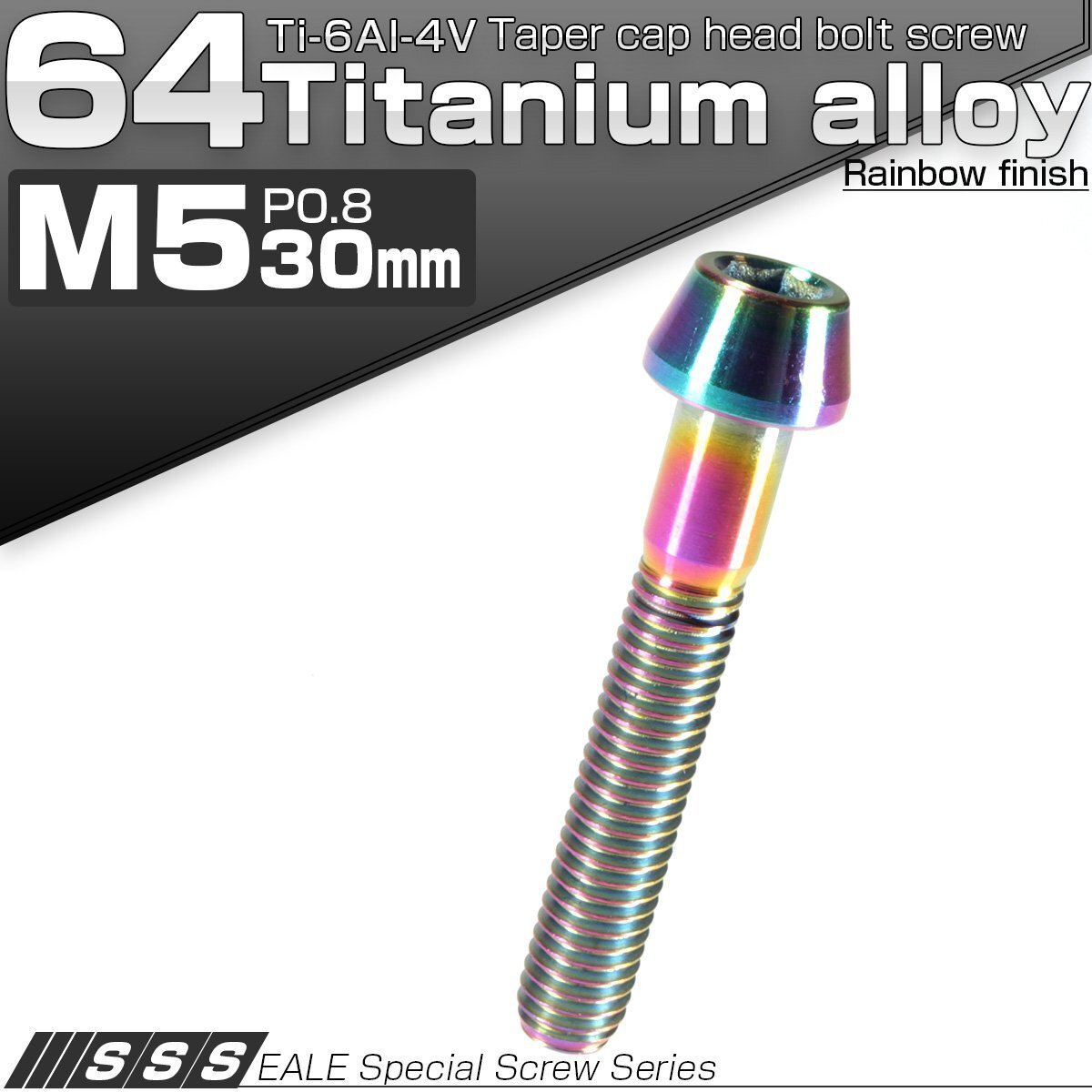 - チタンボルト M5×30mm P0.8 キャップボルト 虹色 レインボー 六角穴付きボルト テーパー JA362