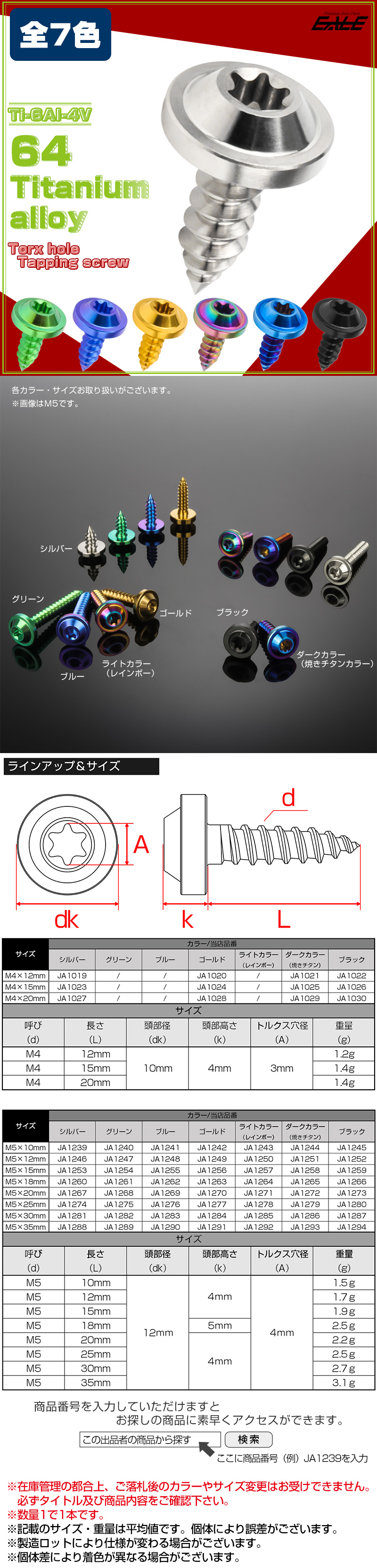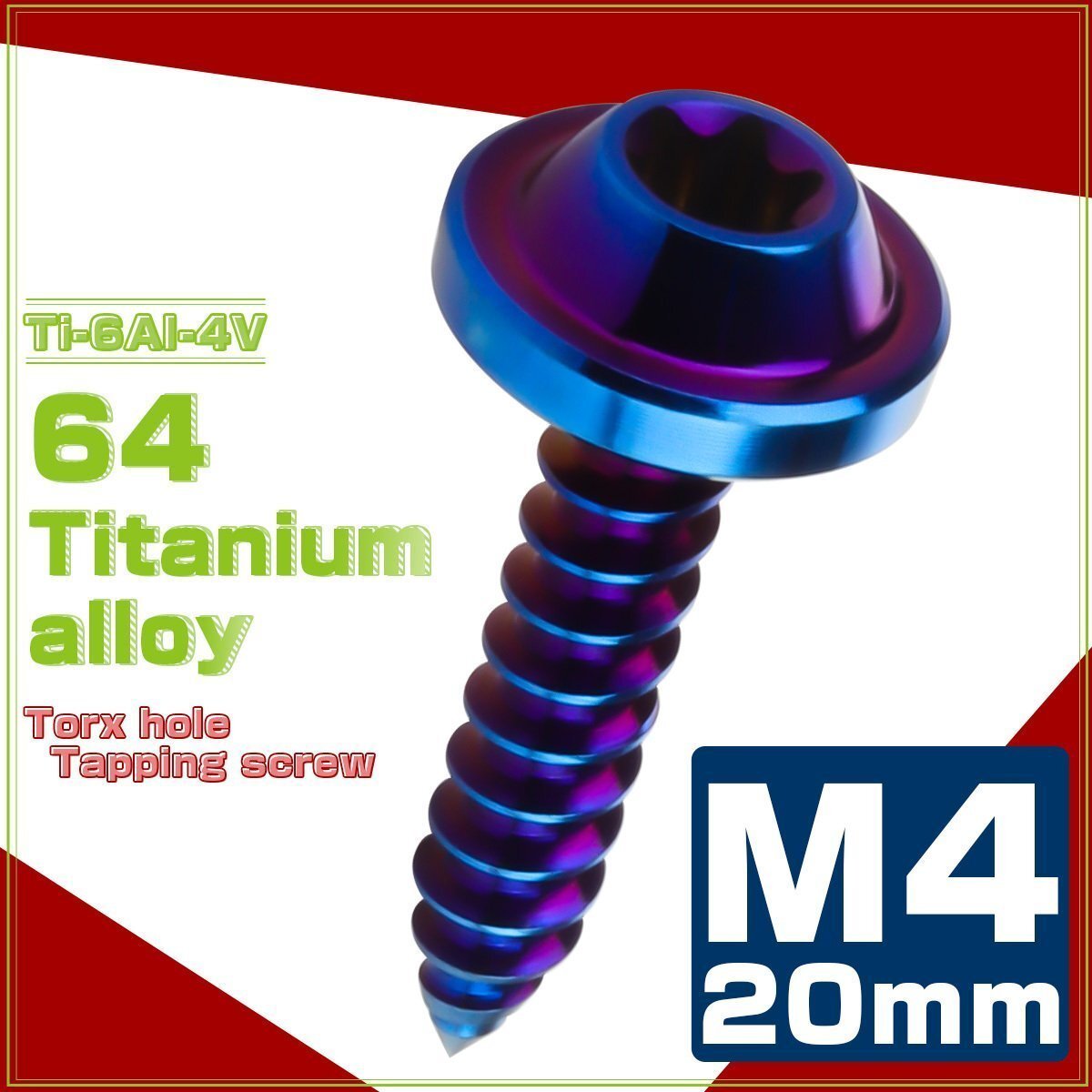 - 64チタン M4×20mm タッピングネジ トルクス穴 フランジ付き ビス 焼きチタン JA1029