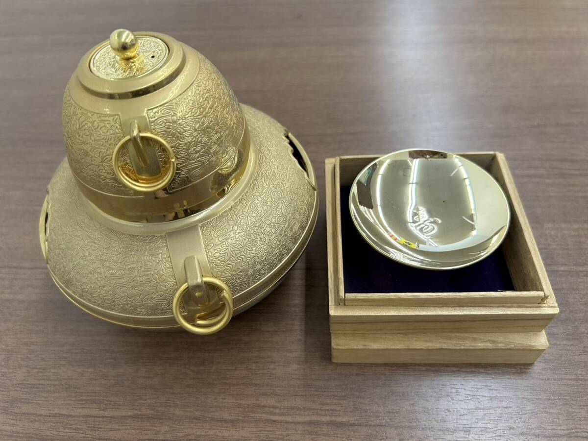 - 【M】メッキ2点まとめ 金杯 茶釜 置物 金メッキ 24KGP