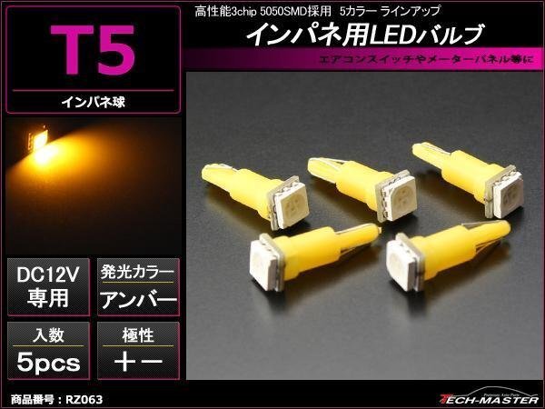 - T5 LEDインパネ球 メーター エアコンスイッチ アンバー5個 RZ063