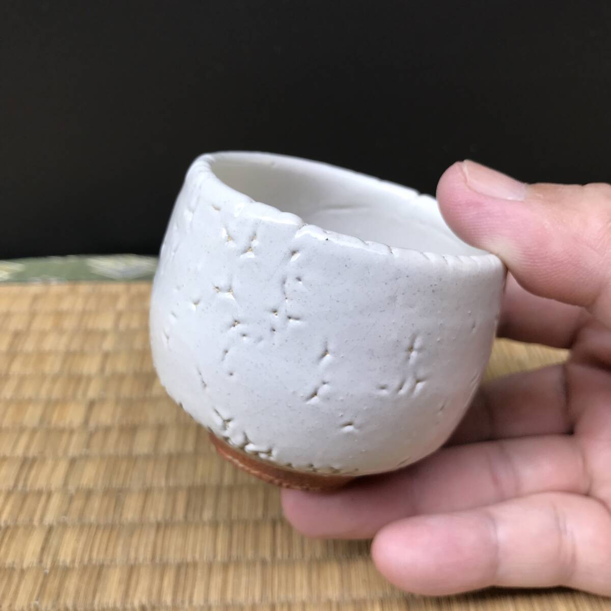 - 白釉窯変のぐい呑みの、清水卯一銘印?酒器 猪口 小鉢 盃 杯 珍味入れ(R70829_C)