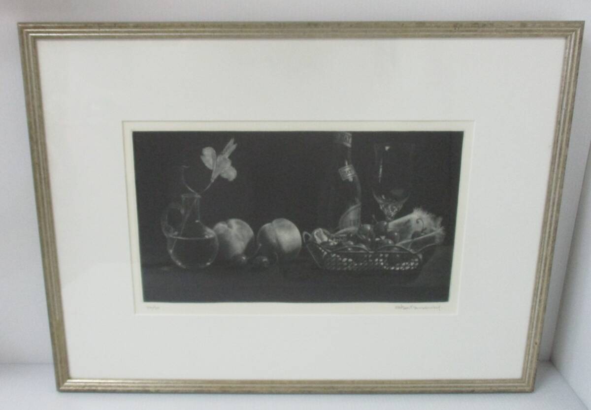 - E-27 真作 山口和雄 卓上静物Ⅲ 版画 44/50 サイン入 アクリル
