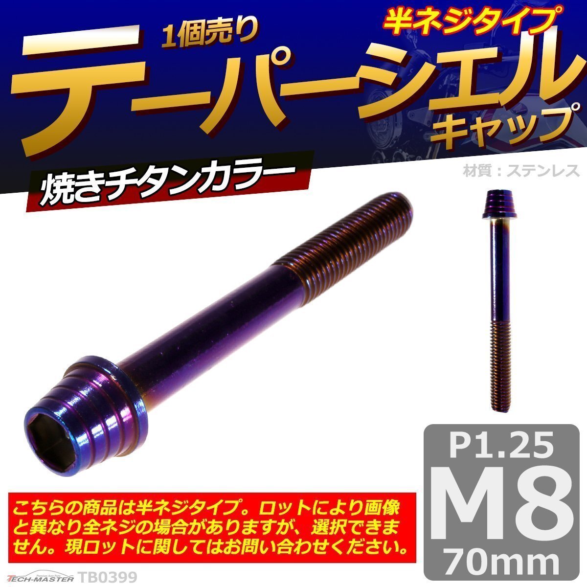 - M8×70mm P1.25 テーパーシェル キャップボルト ステンレス 車/バイク/自転車 ドレスアップ パーツ 焼きチタンカラー 1個 TB0399