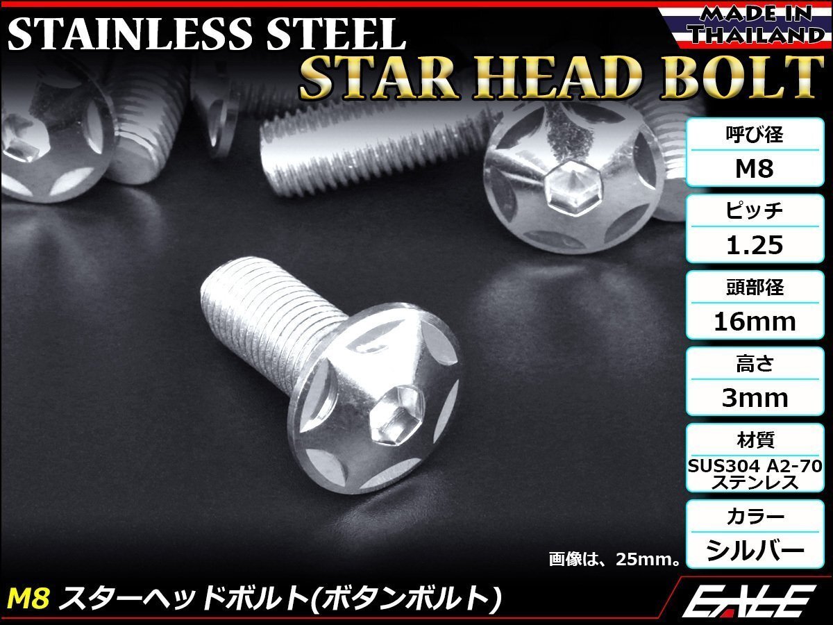 - M8×30mm P1.25 スターヘッドボルト シルバー ボタンボルト ステンレス削り出し SUS304 飾りボルト TR0503