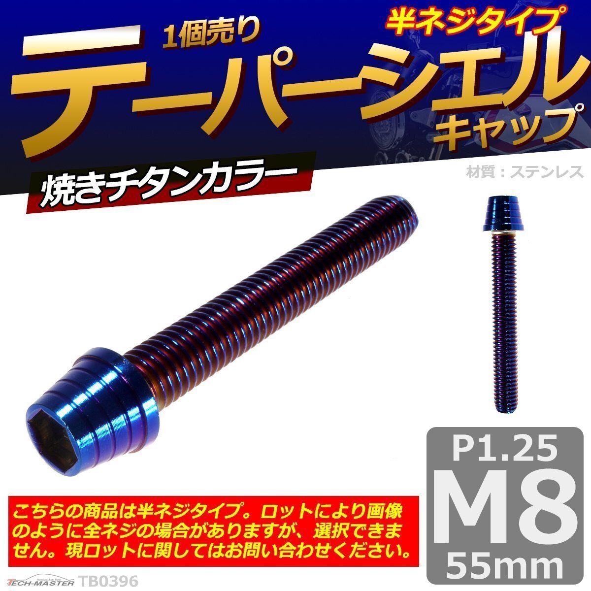 - M8×55mm P1.25 テーパーシェル キャップボルト ステンレス 車/バイク/自転車 ドレスアップ パーツ 焼きチタンカラー 1個 TB0396