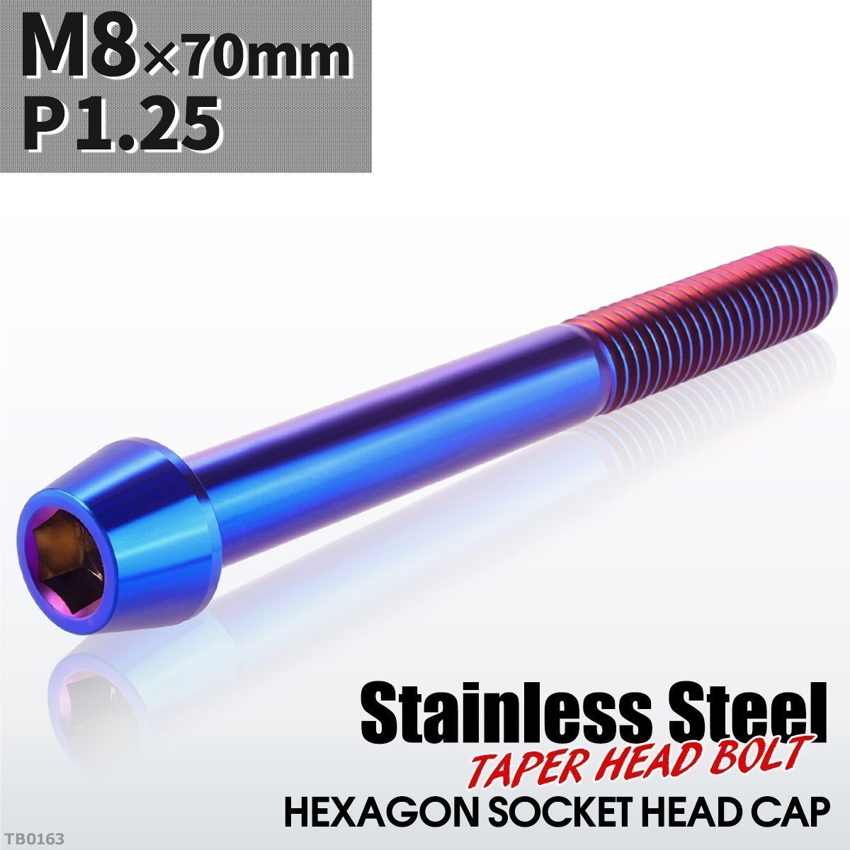 > M8×70mm P1.25 テーパー キャップボルト ステンレス 車/バイク/自転車 ドレスアップ パーツ 焼きチタンカラー 1個 TB0163