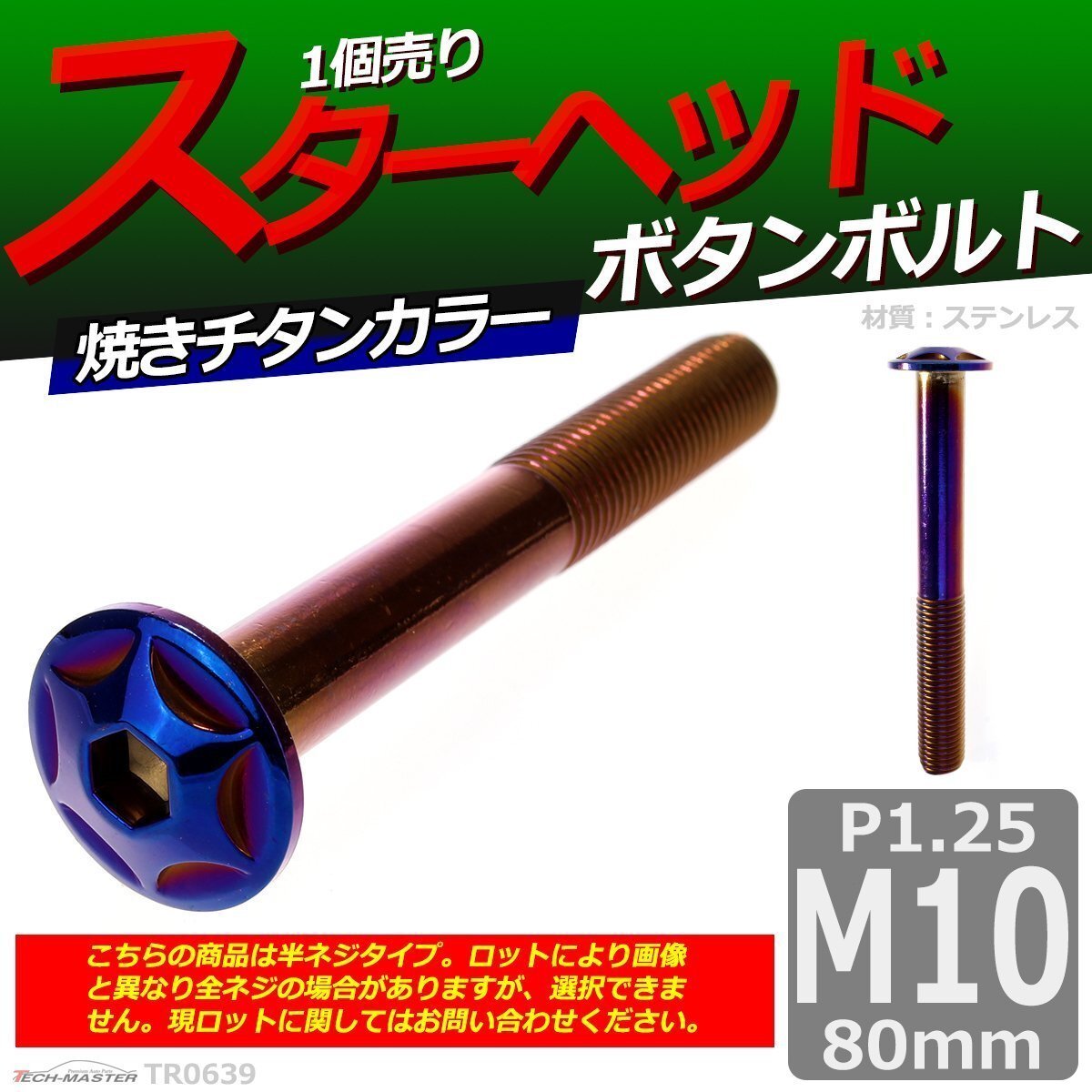 > M10×80mm P1.25 ボタンボルト スターヘッド ステンレス 車/バイク/自転車 ドレスアップ パーツ 焼きチタンカラー 1個 TR0639