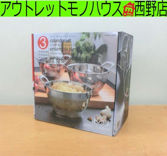 ③新品 コストコ MIU ステンレスコランダー 3PC ハンドル付きザル3個セット 札幌 西野店