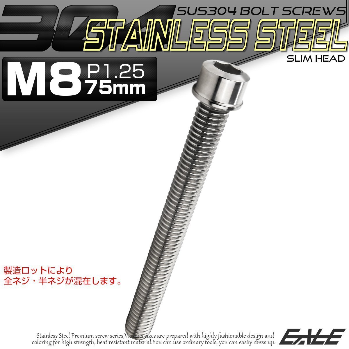 - キャップボルト M8×75mm P1.25 六角穴付きボルト スリムヘッド シルバー カスタムボルト ステンレス製 TB0223