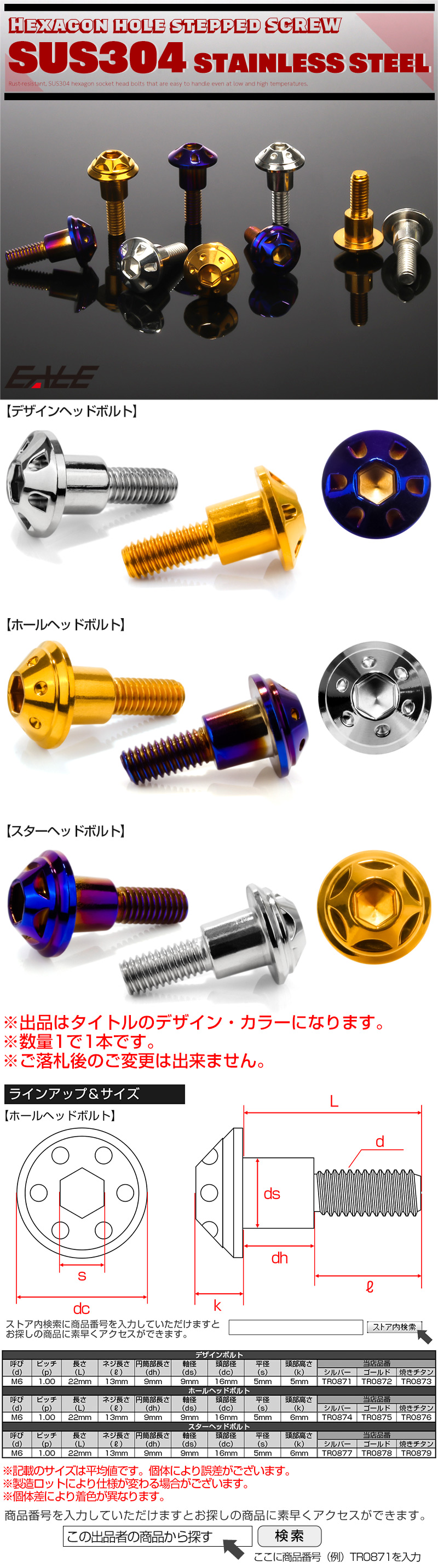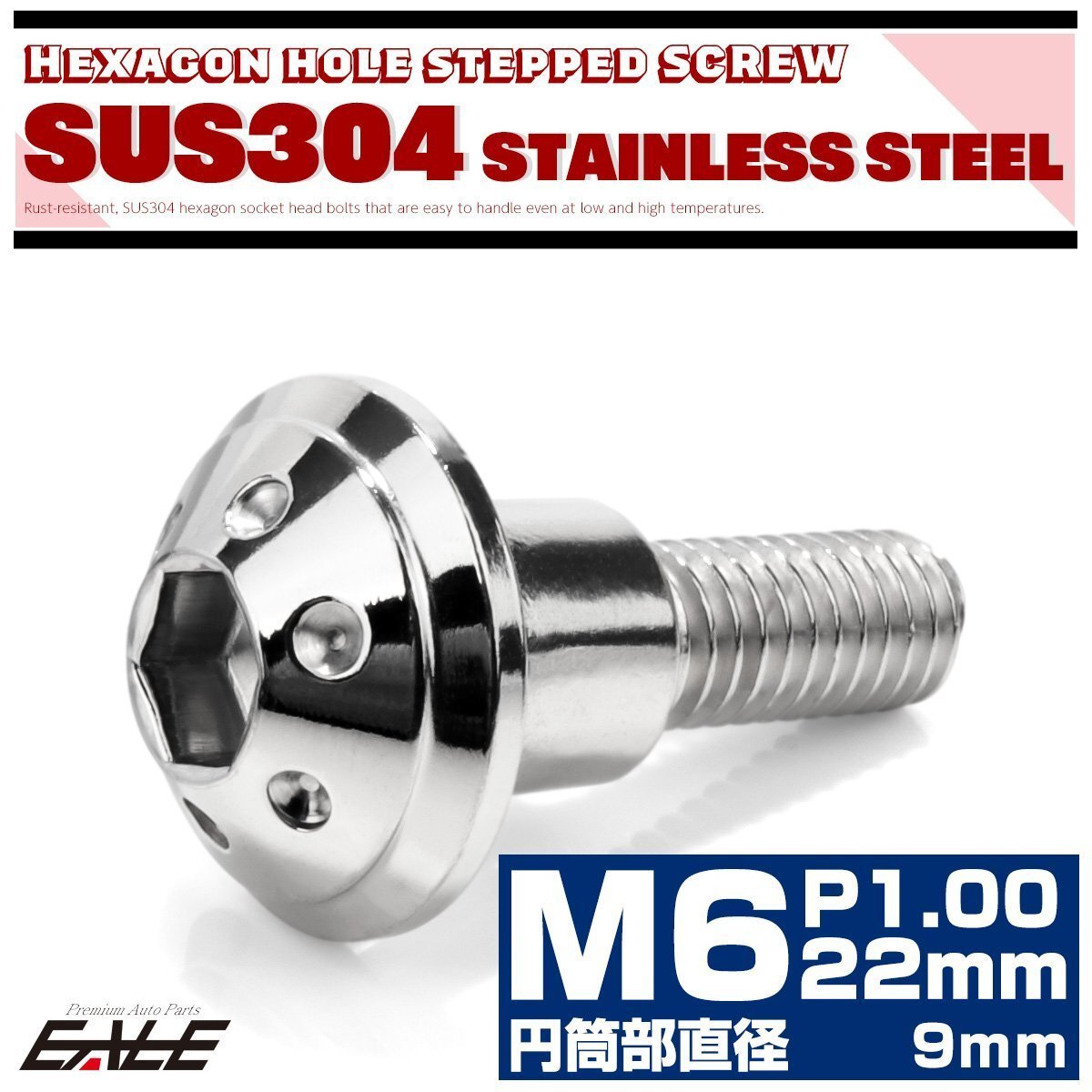 > 段付きボルト M6×22mm P1.0 円筒部直径9mm ホールヘッド SUS304 ステンレス 六角穴 フランジボルト シルバー TR0874